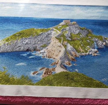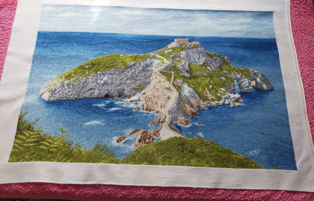 Encargo de Mª Ángeles del islote de San Juan de Gaztelugatxe (Vizcaya) 🤩🥰 Si quieres un encargo hecho a medida envíanos tu foto y pide presupuesto 🧶🧵👍 También puede visitar la web: aracne.es e la publicación.